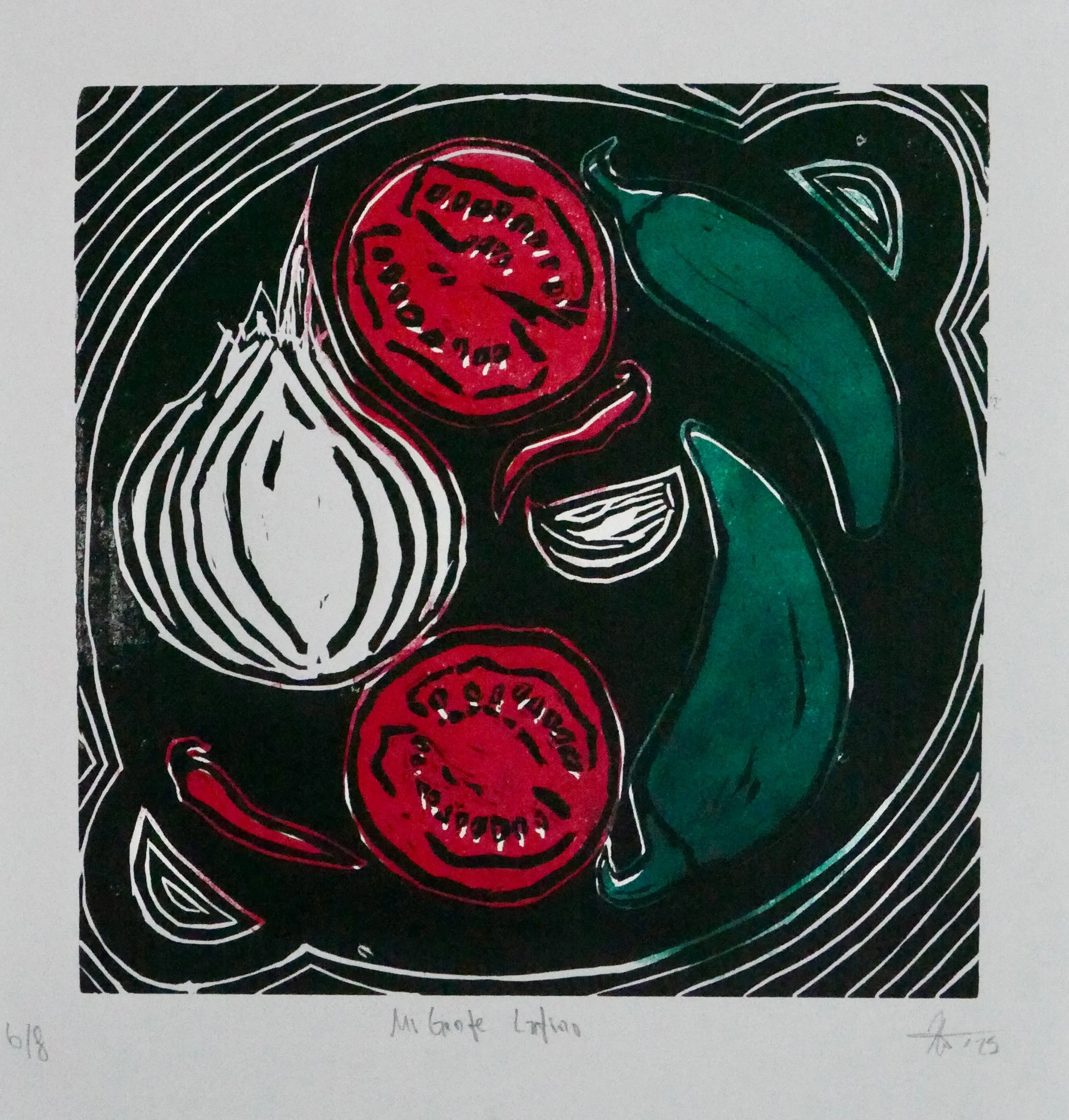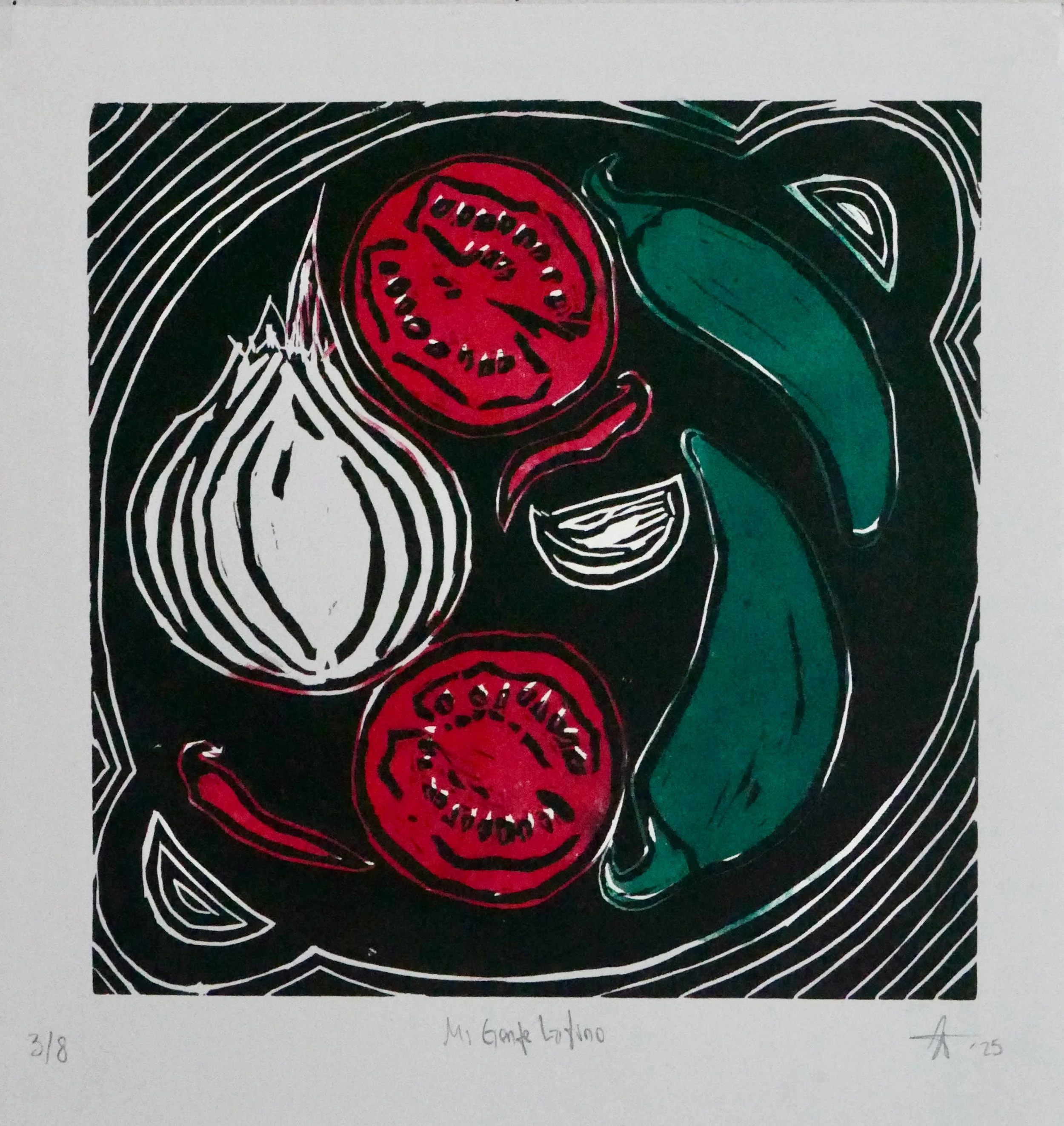 , 2025, linocut on paper, 12×12in, edition size 8.